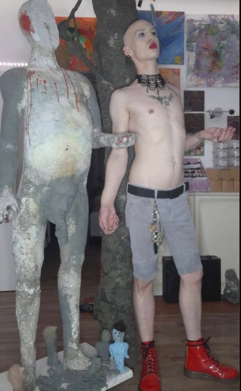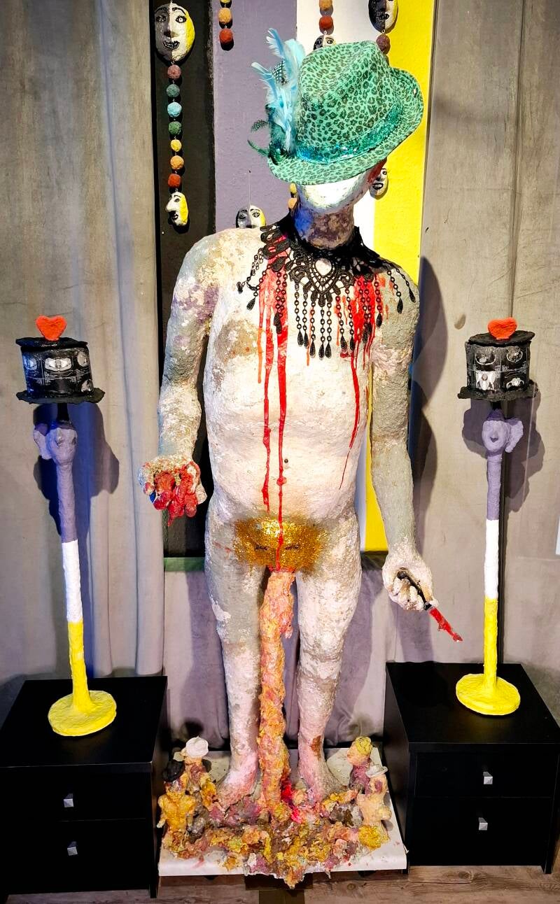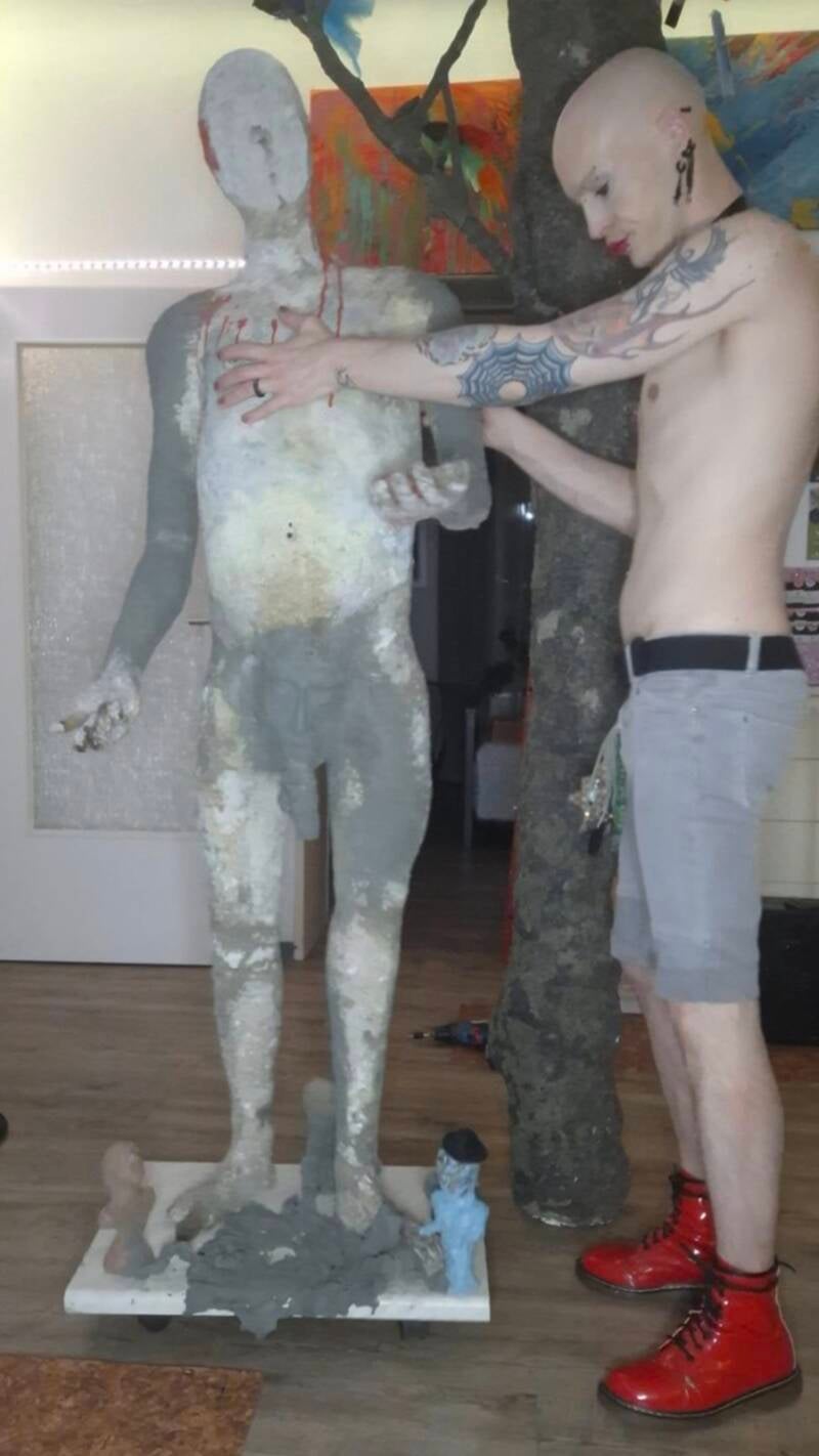 Mein Kunstwerk ist der Versuch, diesem stummen Schrei eine Form, eine Stimme, ein Gesicht zu geben. Es ist ein Aufbäumen gegen die Unachtsamkeit, die schweigende Gewalt, das Wegsehen, das tötet. Dieses Werk ist weit mehr als ein Objekt. Es ist das freigelegte Innere meines Wesens. Nackt, roh, zerbrechlich – und doch ungebrochen. Eine plastische Narbe, eine Spur meiner Kämpfe, meiner Wut, meiner Trauer. Eine Einladung, hinzusehen. Die Skulptur, die vor euch steht, ist keine Provokation um der Provokation willen. Sie ist ein Manifest meiner Existenz. Eine fast exakte Replik meines Körpers – und doch ist sie mehr als ich. Denn sie trägt mein Gesicht an der Stelle, an der andere das Genital erwarten würden.